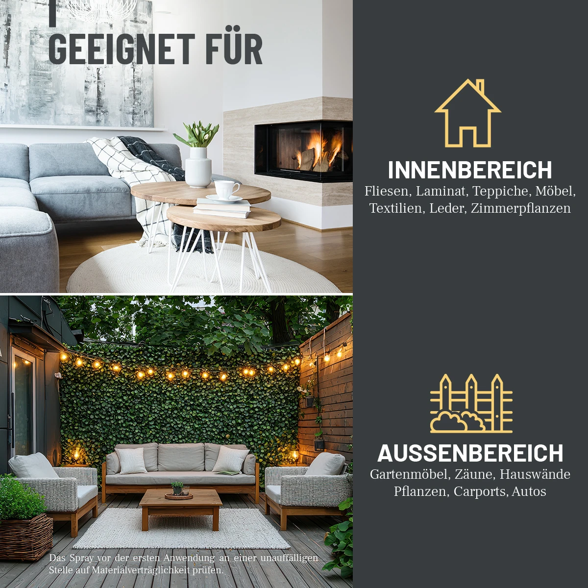 Hinweis: Nicht direkt auf Haustiere sprühen. Das Spray vor der ersten Anwendung an einer unauffälligen Stelle auf Materialverträglichkeit prüfen.