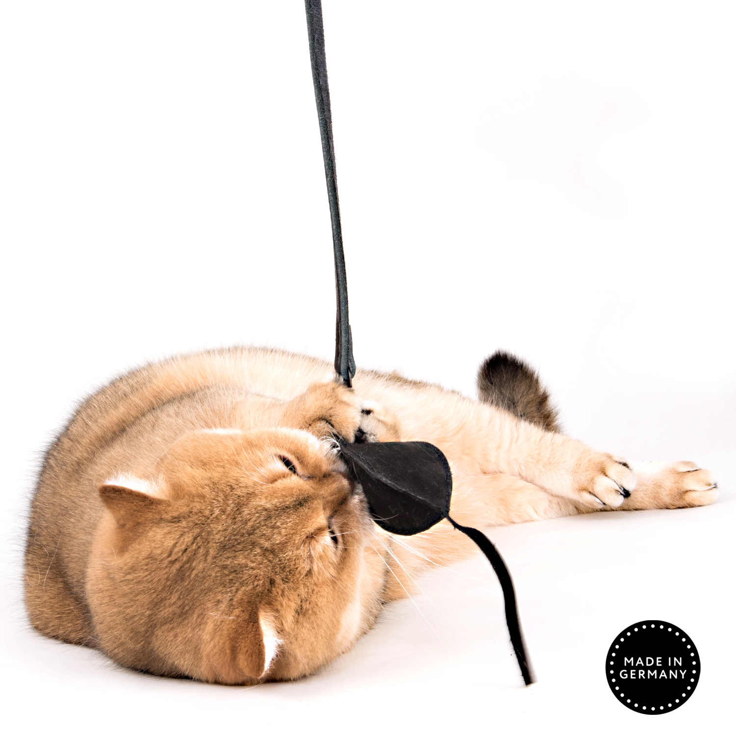 Die Ledermaus, gefüllt mit Katzenminze, übt eine magische Anziehungskraft auf Ihre Katze aus und ist dabei gleichzeitig robust genug, um den Krallen standzuhalten. Ein großer Vorteil besteht darin, dass sie, wenn an einer Katzenangel befestigt, geschickt den Fängen der Katze entkommen kann. So kann ein ausgedehntes Jagd- und Fangspiel beginnen, und wenn Ihr Katzentiger müde von der Jagd wird, darf er sich gerne mit der Maus zum Kuscheln zurückziehen.